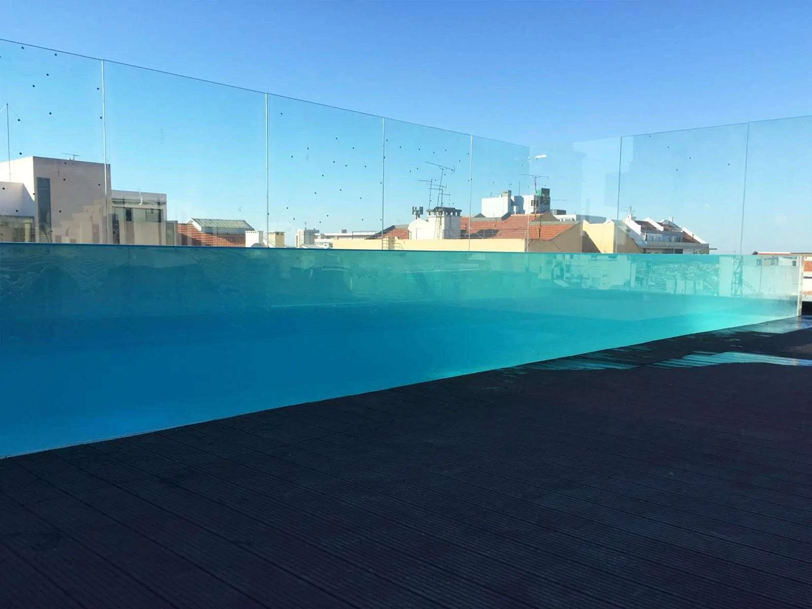 Aqualife supplied and installed a four side acrylic panel for an infinity swimming pool. The totally transparent swimming pool has an amazing view and creates a unique feeling. The project took place on the roof of a 5 star hotel in the center of Lisbon in Portugal. Architect Joao Perlorio of Promontorio architects conceived the design of the pool. Aqualife used PMMA acrylic panels which are manufactured by Reynolds Polymer Technology of USA.